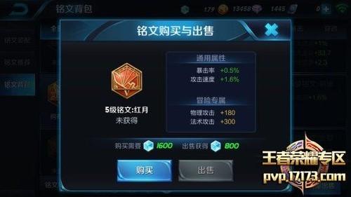 红色铭文槽:【红月】*10,攻击速度+16%、暴击率+5%