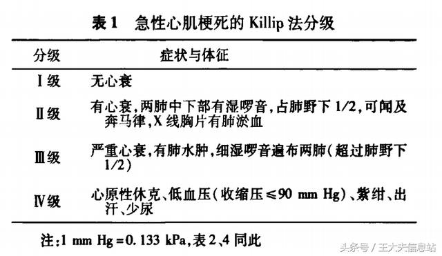 主要有Killip法(表1)、Forrester法(表2)和临床程度 分级(表3)三种。