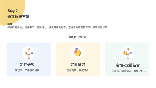 确立画像信息维度后,需要结合用户、时间精力、经费等因素,选择合适的调研方法以实现信息收集。常用的调研方法有3种: