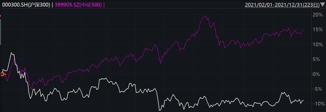 2021年,中小盘风格明显占据上风,作为中小盘的典型代表,中证500指数走势明显强于沪深300。自2021年2月截至2021年12月31日,中证500指数上涨16.0%,而上证50、沪深300分别下跌11.8%、7.7%,走出了一轮明显的中小盘行情。