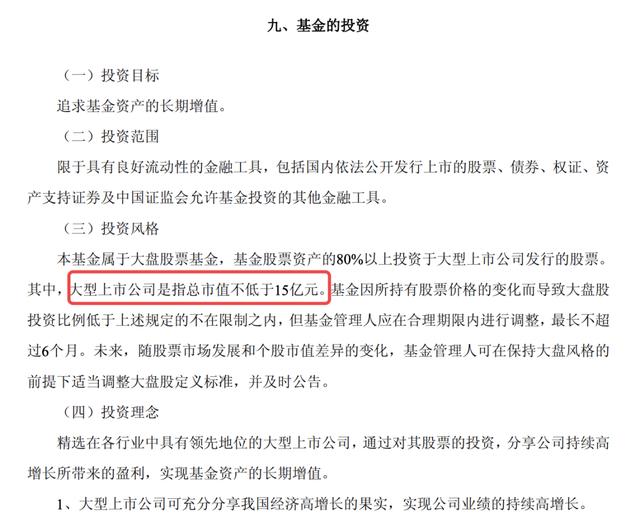 这个其实自由度很大,即便我买了不符合投资范围的股票,还可以有三个月调整期。而且根据合同,最多可以有19%的仓位能合理合法投资大盘股。