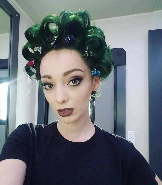 艾玛·杜蒙特,在饰演北极星后大火,为了角色,她必须染成一头绿色的长发,不过她的高颜值还是驾驭了这一色系。