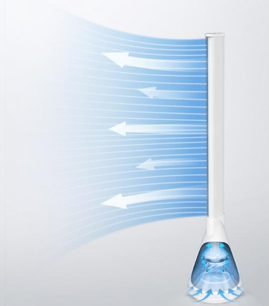 普通风扇通过高速旋转的扇叶带动空气流动,出风较为强劲,大汗淋漓时站在风扇前猛吹几秒就能瞬间凉爽,但也正因如此,长吹普通风扇会觉得头痛不适。无叶风扇片不靠“切割空气”来工作,使用者不会感到阶段性冲击和波浪形刺激,能做到大面积分散送风,风力柔舒适平稳,让人仿佛漫步大自然中,感受林间徐徐清风。受风着凉?不存在的!
