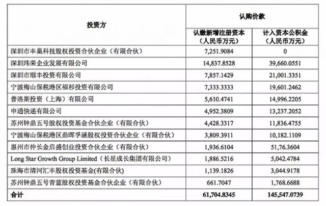 除了韵达和申通,此次增资的还有由玮荣发展(顺丰系)、顺丰投资、普洛斯投资、鼎晖孚涵、启盛创业、长星成长、汇丰投资、钟鼎五号和钟鼎五号青蓝。其中丰巢的5大股东顺丰、申通、韵达、中通、普洛斯中,只有快递股东中通快递未增资。