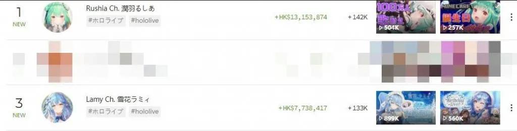 而据Youtube专业数据收集网站Playboard的最新统计,在2021年VTuber获赏榜单排名中,润羽露西娅(潤羽るしあ)以近2亿日元(折合人民币1069万元)登顶榜首,引得网友直呼“居然比真人还能赚”。
