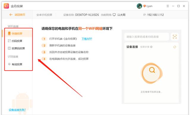 其中,安卓手机的投屏方式共支持以下四个:快捷投屏、扫码投屏、投屏码投屏以及有线投屏,都是需要在手机端安装金舟投屏app的。而苹果手机借助的是镜像功能,无需安装任何app。