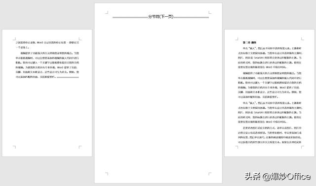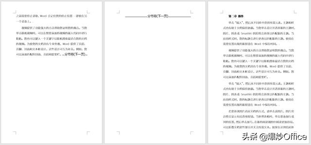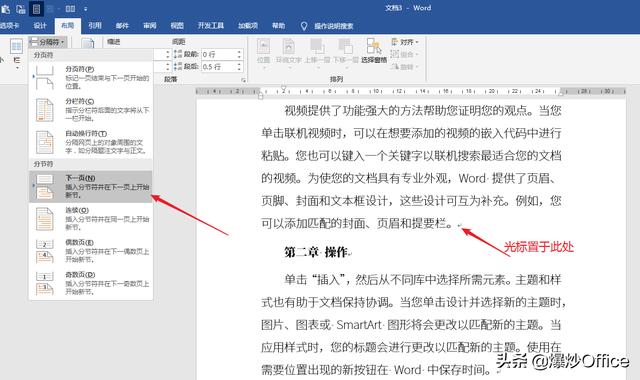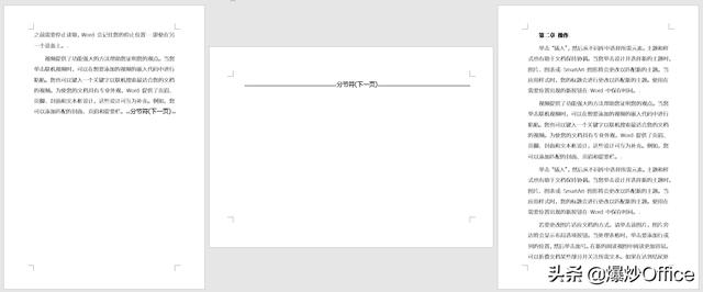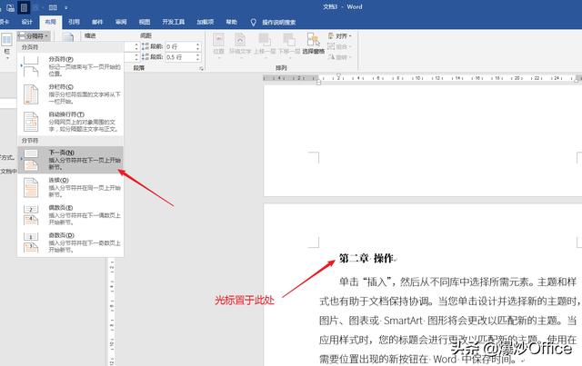 第3步接着,将光标置于第二章文字之前,再插入一个下一页分节符。