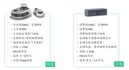 当前,国内的四维图新、百度、高德,欧美的HERE、TomTom等头部图商,普遍采用这种昂贵的激光雷达+惯导+全景相机+GNSS+差分基站的方式。单套设备价格从100万元到几百万元不等,每家采集车的数量从几套到二十几套不等。之所以采用如此成本高昂的设备,是因为要满足自动驾驶车辆对高精度地图的绝对精度、相对精度、识别率等指标的要求,争取抢在其他图商之前开发第一张完整的高精度地图,形成先发优势,获得市场青睐。随着时间推移和众多的厂商加入激光雷达和惯导设备的开发中,设备的价格正在快速下降,预计在3年后将会下降到当前价格的三分之一左右。