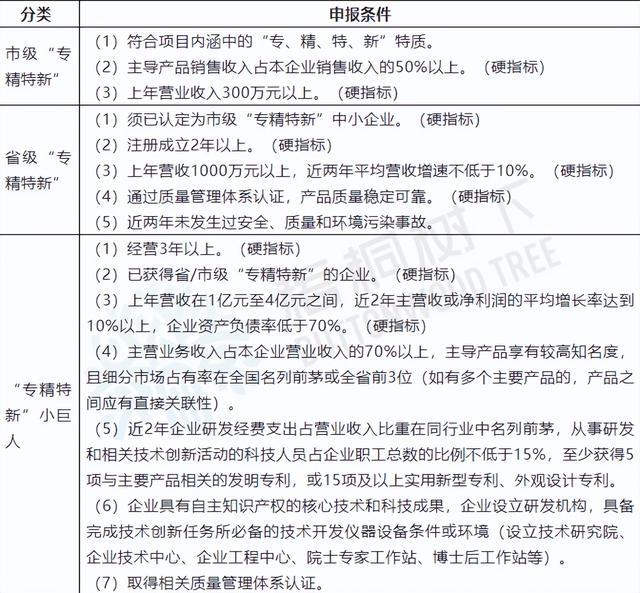 国家及各省市“专精特新”企业申报条件如下文所示: