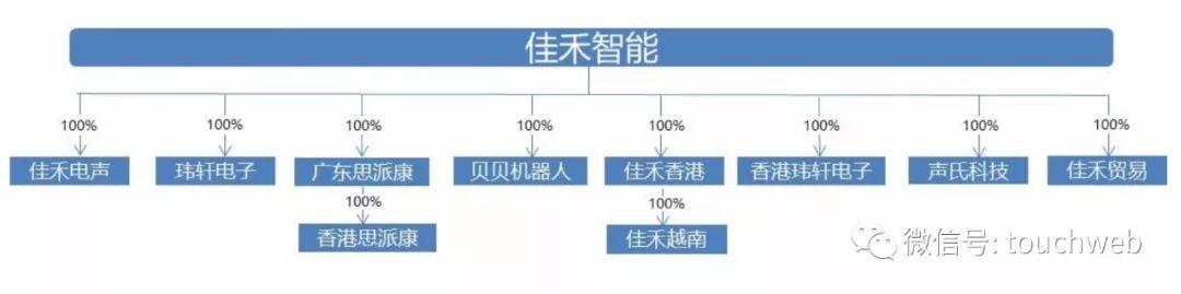佳禾智能拥有8家一级全资子公司,为佳禾电声、玮轩电子、贝贝机器人、广东思派康、佳禾香港、香港玮轩电子(正在注销中)、声氏科技、佳禾贸易;2家二级全资子公司,为香港思派康、佳禾越南。