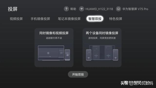 双投是华为比较创新的投屏方式。既支持同时镜像和视频投屏,又支持两个设备同时镜像投屏。
