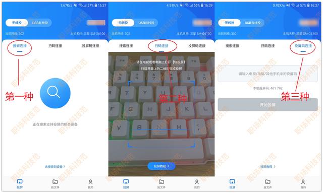 即使两台设备连接不同的网络,也是可以投屏的,选择扫码投屏或输入投屏码即可连接。