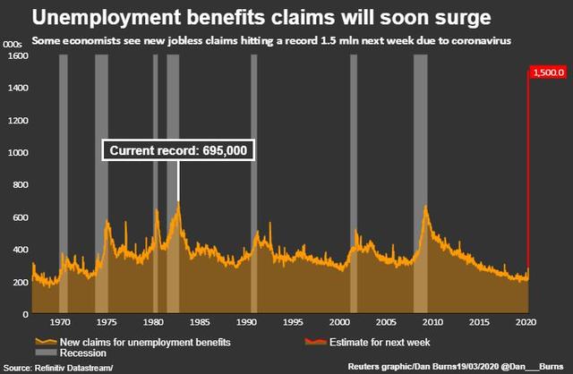 哪怕是在金融危机降临的情况下,失业率都会飙升,更何况是出现破产潮呢?因此,破产潮一旦出现,严重的失业率势必接踵而至。据悉,美国财长努钦17日就曾警告,疫情可能使美国失业率达到20%,给美国经济带来的影响也将超过2008年金融危机。
