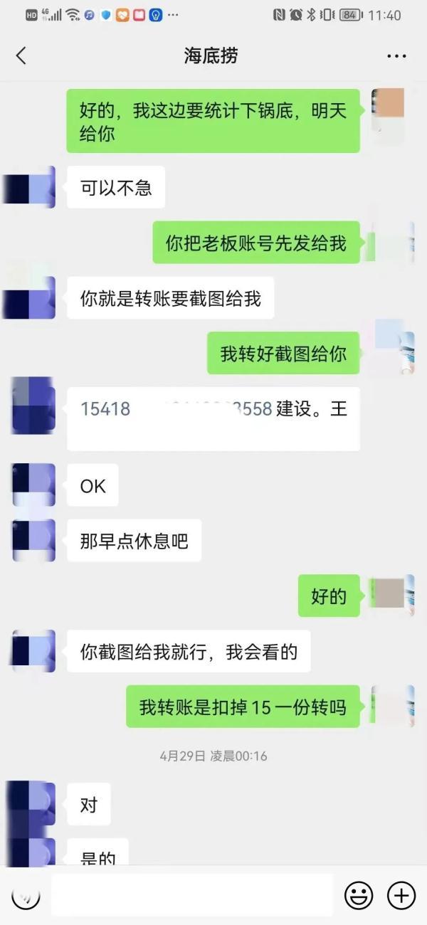 原来,4月28日,李小姐通过朋友介绍认识了一名自称有“海底捞”火锅团购资源的网友“zzz”。通过微信联系,两人谈妥以170元一份的价格向李小姐小区售卖50份团购火锅,每份向李小姐返利15元,李小姐只需支付减去返利的金额,共计7750元。李小姐信以为真,很快将钱款转到了对方提供的银行账户,并约定于4月30日晚上8点前将火锅送至李小姐所在的小区。可是直到约定日晚上9点,期待已久的“海底捞”却始终没有送达,李小姐迅速与对方联系,发现再无回音。