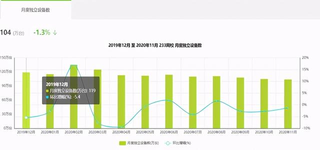 233网校APP覆盖设备数,2020年11月份104万台,数据来源于艾瑞咨询。