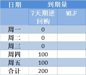 下周共有200亿元7天期逆回购到期,周四、周五分别有100亿元逆回购到期。下周无MLF到期。