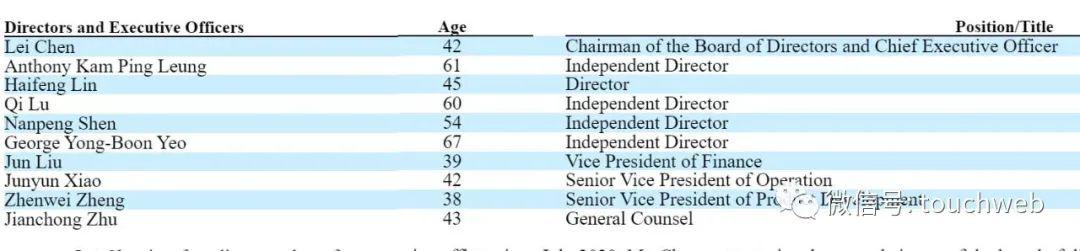 当前,拼多多董事长、CEO为陈磊,独立董事为Nanpeng Shen(沈南鹏)、Anthony Kam Ping Leung、George Yong-Boon Yeo、Qi Lu(陆奇),董事为Haifeng Lin(林海峰)。