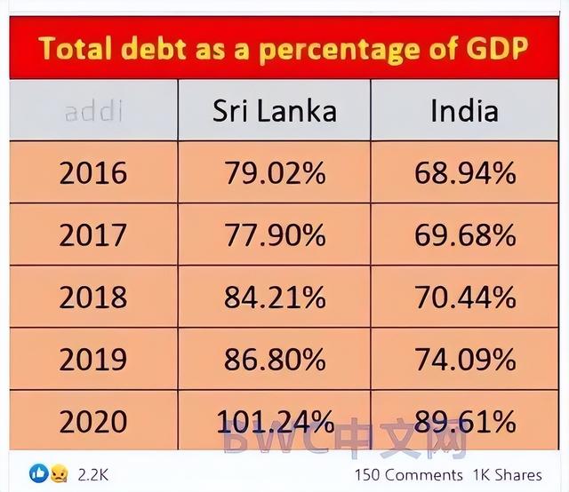 斯里兰卡央行5月19日证实,该国自1948年以来首次出现主权债务违约。而据印度Factly网站两周前前援引金融分析师的一个图表显示,早在两年前,印度债务总额就已达到GDP的约为89.61%。而此时,印度经济负债累累,或正在成为下一个斯里兰卡。