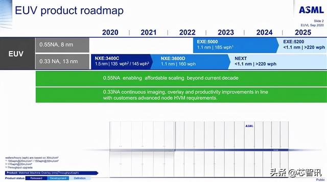 自2017年ASML的第一台量产的EUV光刻机正式推出以来,三星的7nm/5nm工艺,台积电的第二代7nm工艺和5nm工艺的量产都是依赖于0.55 数值孔径的EUV光刻机来进行生产。