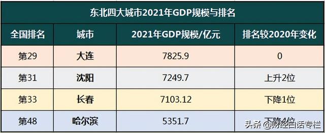 目前沈阳、长春已经退出了内地经济实力30强阵容,哈尔滨快掉出Top50,大连今年年底可能也会被挤出Top30。