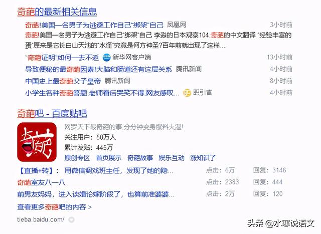 找古代的例句容易,只要动用一些诗词搜索引擎就可以了,但找一个“奇葩”作为褒义词的用法现代或者当代的例句,则不大容易了。因为只要以“奇葩”作为关键词一搜,满屏都是真正的奇葩之人、奇葩之事,超出正常人的行为和思维之外。
