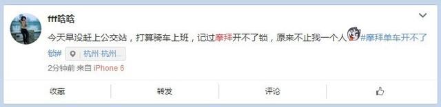 微博上被摩拜耽误的用户也不在少数,很多人抱怨由于摩拜此次莫名其妙的故障导致其上班险些迟到,并且本次故障范围波及全国多个城市。目前摩拜官方说明称此次故障已经修复,用户可以正常使用摩拜单车。