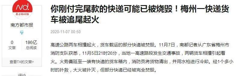 不过,近两年的双十一快递运输是几家欢喜几家愁,因快递车着火,快递被烧毁的新闻时有发生,今年也不例外。