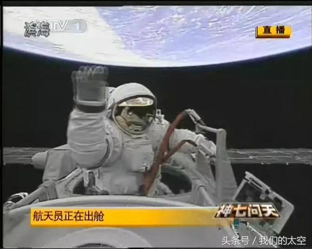 16时41分,身着中国研制的“飞天”舱外航天服的翟志刚头先脚后飘出船舱,开始沿着轨道舱壁活动。