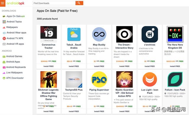 另外,该网站还有 Android 应用的限免版块,可以看到当前正在限免的 Android 应用,不过也都是 Play 商店的。