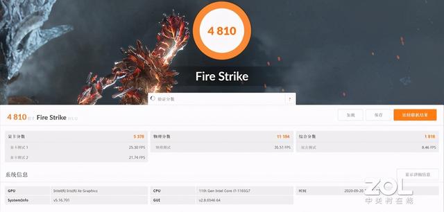 通过3DMark的TimeSpy、Fire Strike Extreme、Fire Strike三种模式进行测试,锐炬Xe核显性能具体如下: