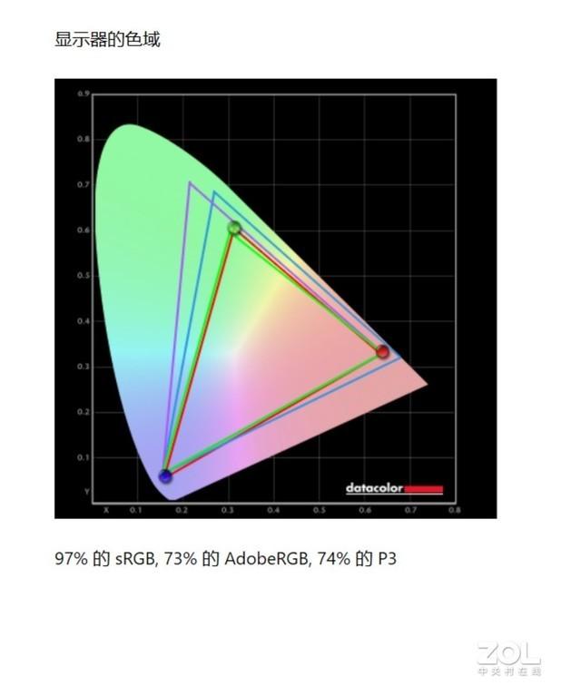 在屏幕色域方面,华为MateBook X Pro 2021款实测达到了97% sRGB色域覆盖,AdobeRGB色域覆盖为73%,P3色域覆盖为74%,符合专业设计师电脑的色域标准。