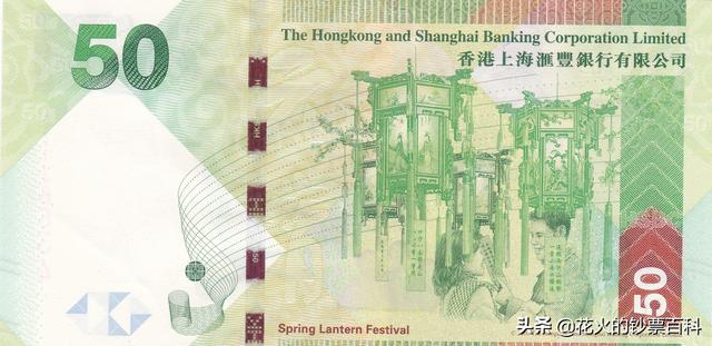 50港元主题是元宵节,主图应该是一对情侣,在猜花灯上的灯谜。元宵节是农历新年的第一个月圆之夜,是祭月、赏月的日子,也象征着春天的到来,这是传统新春定义的最后一天。在中国,元宵节的传统习俗包括“猜灯谜”,人们会把一些脑筋急转弯之类的问题写到纸上,让人们来猜谜。