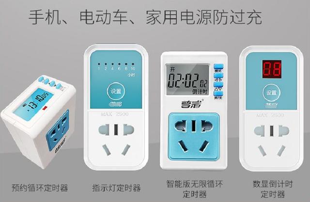 第2个避免的方法:选择具有定时关机的插座,当然,一个智能充电器价格不便宜,而且还只是电动车可以用,如果想要省钱,可以选择带有定时关机的插座,不过,它是设定好充电时间,比如设定8个小时,就会在8个小时以后关机,显然没有定时关机的充电器智能,但它的好处,可以是手机、电视等家用电器都可以用到它。
