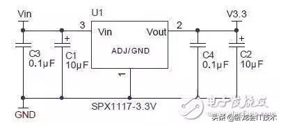 因电池供电时,经LDO 电路稳压后,输出电流有限,当有外接电源时,稳压方式采用SPX1117-3.3V 稳压器进行稳压,输出电流可达800mA。交流电经过整流可以变成直流电,但是它的电压是不稳定的:供电电压的变化或用电电流的变化,都能引起电源电压的波动。要获得稳定不变的直流电源,还必须再增加稳压电路。电路图如图6 所示。