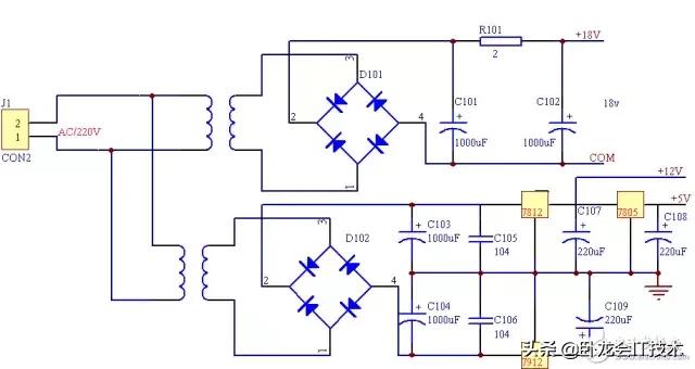 电源电路:具有2组输出直流输出,一组为主输出DC18V,作为充电电路的能源输入;另一组输出±DC 12V和DC 5V,给本电源中控制电路、恒流(压)调整电路、显示电路等部分提供工作电源。