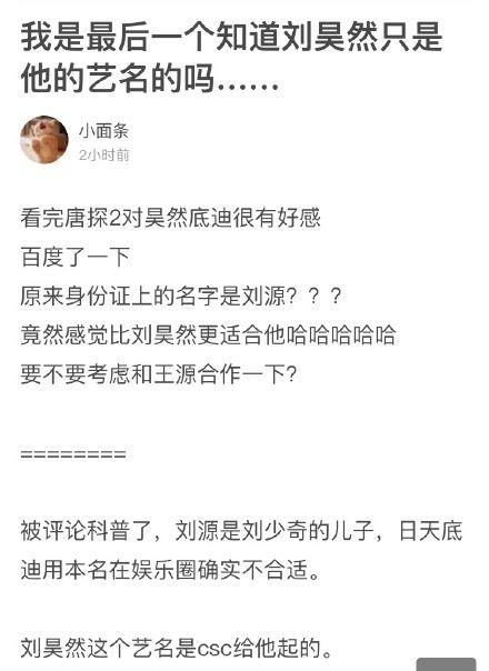 1997年出生的刘昊然最近凭借《唐人街探案2》再一次屠榜热搜,今天还以本名登上了热搜榜,原来不止本编一个人不知道刘昊然的本名竟然叫做刘源。因为与某人同名而取了刘昊然这个艺名,改名的原因也是这么与众不同啊~