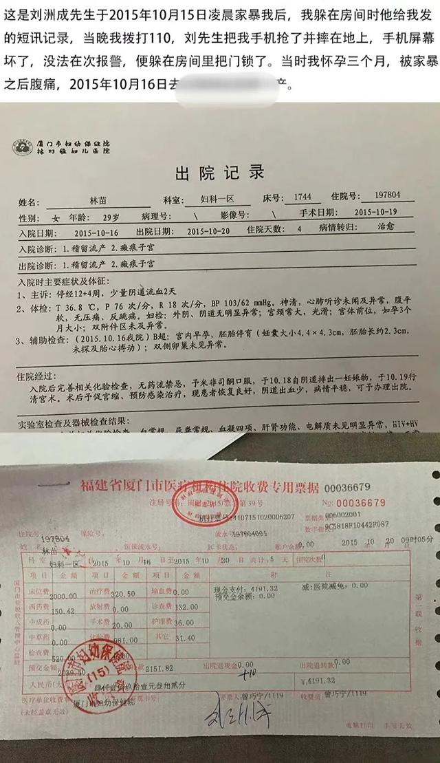 9月结婚,10月刘洲成便将拳头伸向了当时还怀有身孕的林苗。
