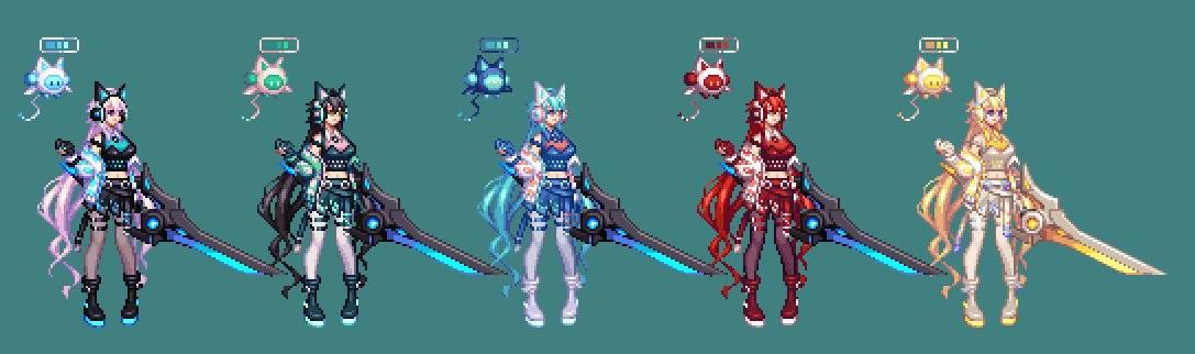 武器就很违和,巨剑头,短剑身,优点在于百搭的黑青配色,缺点依旧是刀刃实心不做光效