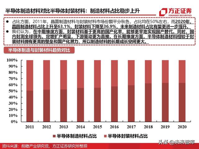 半导体制造材料对比半导体封装材料:制造材料占比稳步上升
