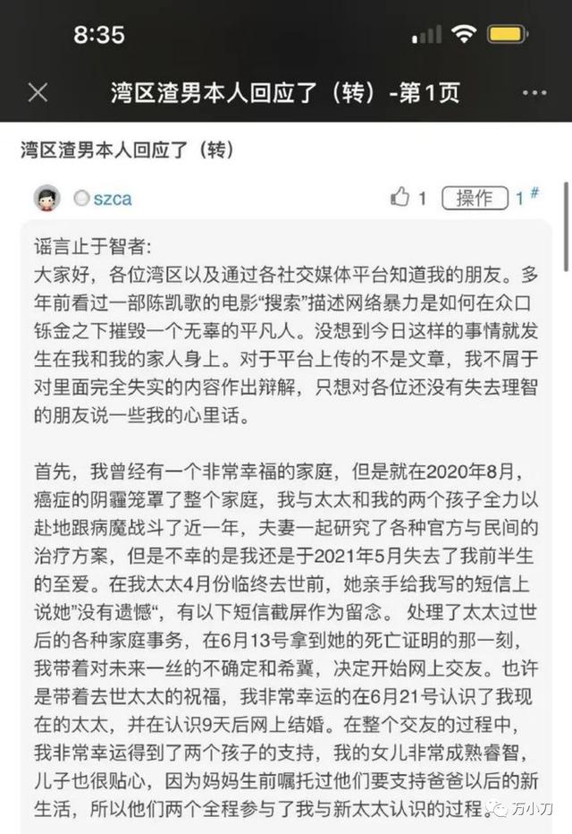 万小刀想说,不要因为一颗老鼠屎否定一大锅白米粥,也不要因为一个“湾区渣男”就将所有男性一棒子打死,因为他是极品渣男,代表不了99.9999%的男性。