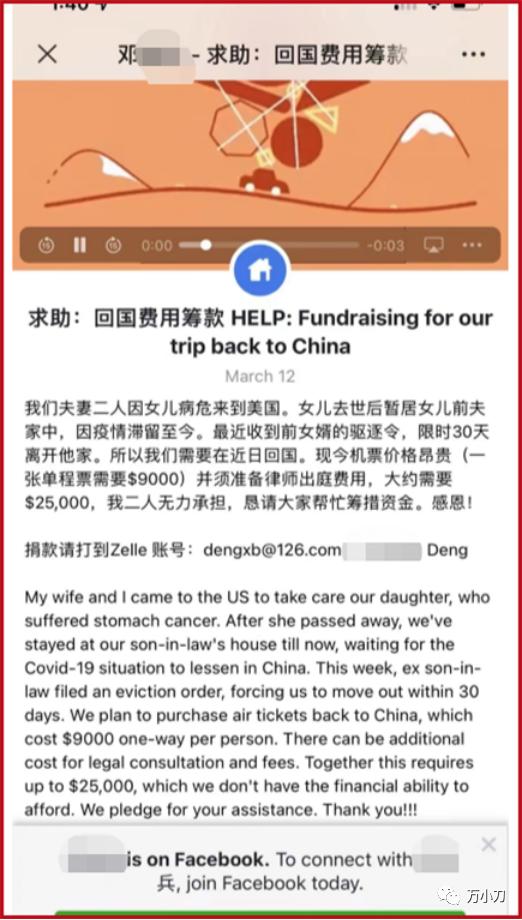 事情闹到这个地步,老人只能在网上发求助公开信,筹集回国费用。
