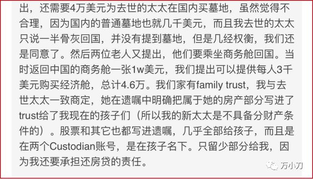 不论真假,可以肯定的是,女一号几万美元的丧葬费,这么一弄就被他落袋为安了,留下的其他遗产,也被男一号收入囊中了。