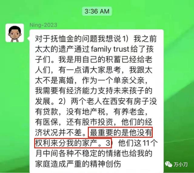 把对方描述得如此彪悍,意思很简单,错的是他们,自己是“引狼入室”。甚至还用亡妻的微信,在北邮湾区群内喊冤洗白……