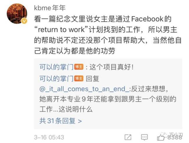 2020年,女一号结束了9年的全职妈妈生涯,在丈夫男一号的帮助下,通过脸书的“return to work”计划重返职场,年薪也拿到了20万美元,这对这个拥有价值430万美元大别墅的家庭来说,无疑是一件好事。