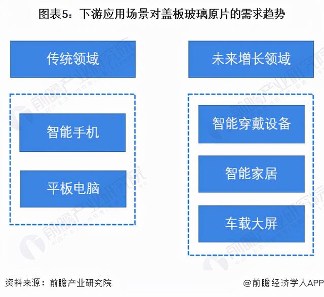 最初盖板玻璃原片的应用较少,自苹果公司开始采用盖板玻璃作为手机视窗防护后,盖板玻璃原片在电子设备领域的渗透不断加深。目前,我国盖板玻璃原片的下游应用场景主要为智能手机、平板电脑、智能穿戴设备、智能家居和车载显示等方面。这些领域的产品产量较高,对于玻璃原片的需求旺盛。