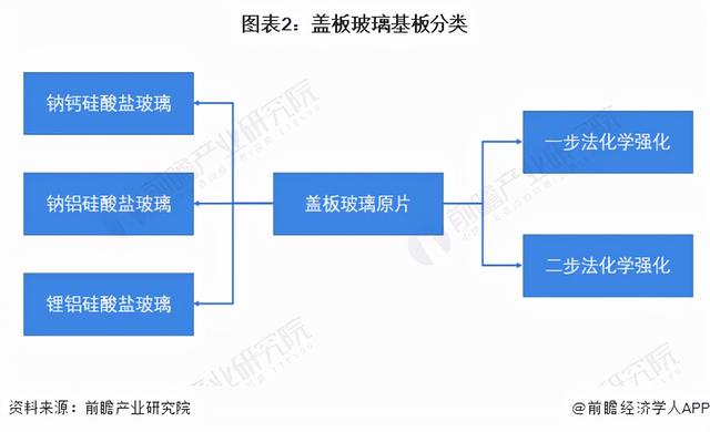 盖板玻璃原片按照化学组分主要分为钠钙硅酸盐玻璃、钠铝硅酸盐玻璃、锂铝硅酸盐玻璃(钠铝和锂铝都属碱铝硅酸盐玻璃),按照化学强化工艺可以分为一步法化学强化玻璃和二步法化学强化玻璃,不同材料及工艺组合的差异主要在于耐划伤、抗冲击性能指标。目前我国的盖板玻璃原片主要为铝硅酸盐玻璃,使用二步法化学强化。