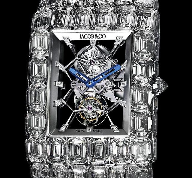 作为世界顶级珠宝商,Jacob&Co的专业体现在至臻美钻和宝石的专业甄选之中,同时严格核实产地来源。腕表采用18K白金表壳和表链,由239粒不同大小的方形切割美钻(包括30颗重达3克拉的独立钻石)镶嵌而成,共重260克拉,每颗卡装美钻均附上最严格标准的GA高品质钻石鉴定证书。
