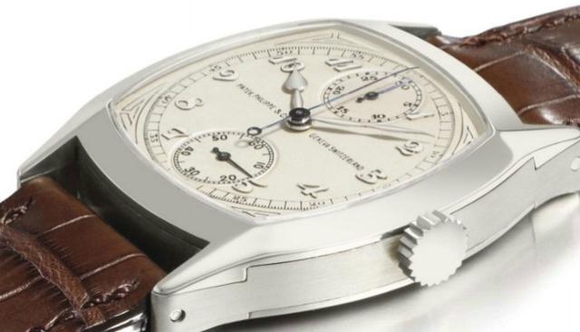 看着这枚1928,也许你会质疑,这样一枚看似寻常的手表为什么可以卖这么高的价格,事实上,这是百达翡丽唯一留下来的白金单钮计时手表,这是其卖出高价的原因之一。这款酒桶形的单钮计时码表装载于白金表壳中,白色盘面上两个副表圈分别置于12点钟与6点钟位置。以现代眼光看,其时针与分针特别有韵味。