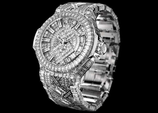 这款腕表价值500万美元,镶嵌1280颗钻石,其中包括超过100克拉的长方形钻石和6颗每颗重量超过3克拉的祖母绿形切割钻石。全部由拥有40年经验的纽约市珠宝商手工切割。