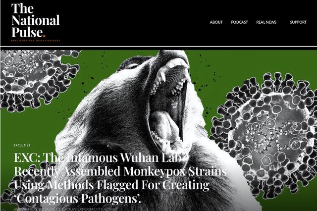 不过,不论是亲民进党的“媒体”还是邪教“法X功”,他们文章里所抛出的“武汉实验室曾做猴痘实验”的说法,其实都来自一个共同的英文源头——一个名叫“国家脉搏”的网站。